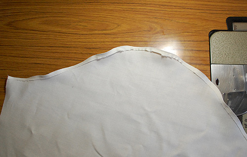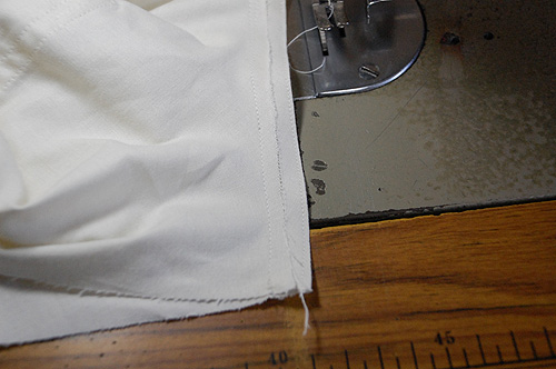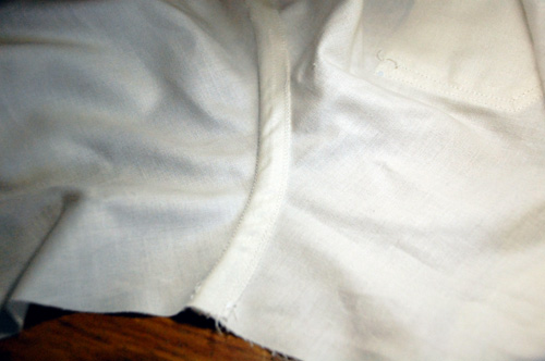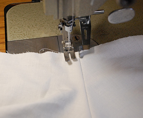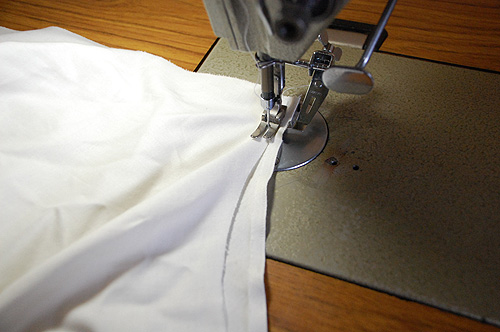 身頃を起こし、トンボを2.5ミリほど内側に寄せてステッチを打ちます。