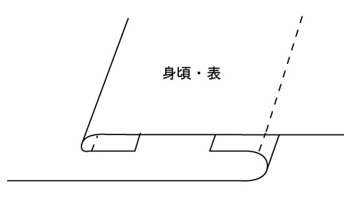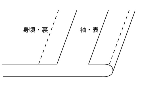 袖ぐり・折り伏せ縫い・ボールへマーと回転三巻ラッパ