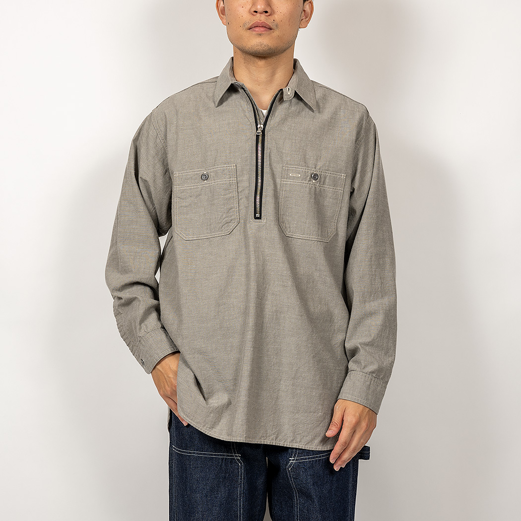 品名 Zip Work Shirt, Grey Chambray