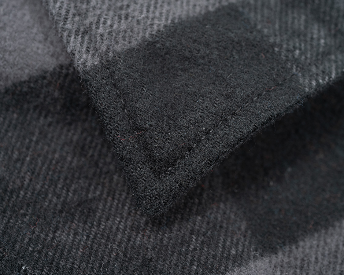 対して、ホワイト・グレーのチェックは思いっきりひっかいて起毛。かつ、打ち込み(タテヨコの糸本数)も多いのでガチガチ系のネル。着こんで腰が抜けていく。