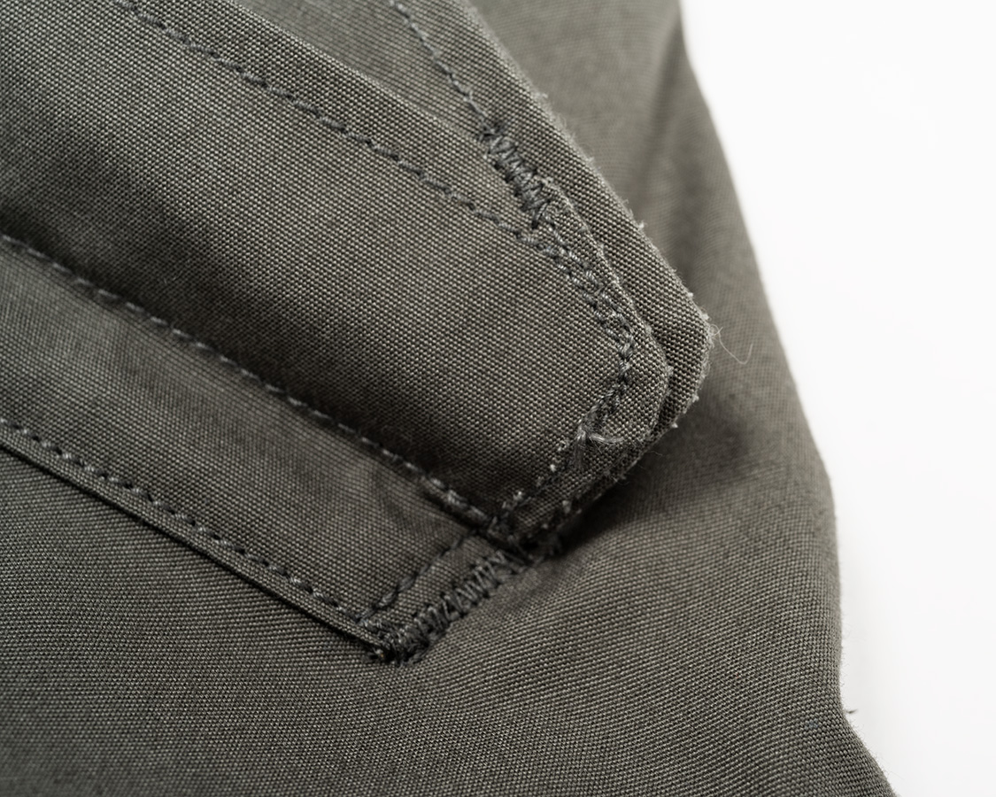 現代なら、玉縁ポケットにフラップを流し込めば良いだけなのに、わざわざ玉縁が一部フラップにくっついたような形。一応「物が落ちづらいように」と言われていますが・・・まぁ、初めて作るので原理主義的にいきました。