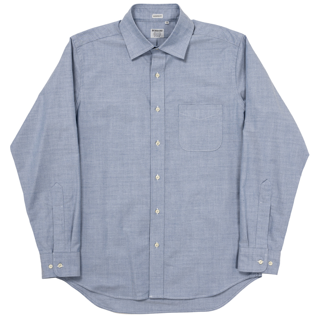 Modified Wide Spread Shirt, Blue Supima OX