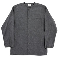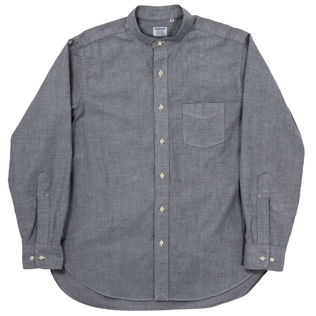 Band Collar Shirt, Black Supima OX