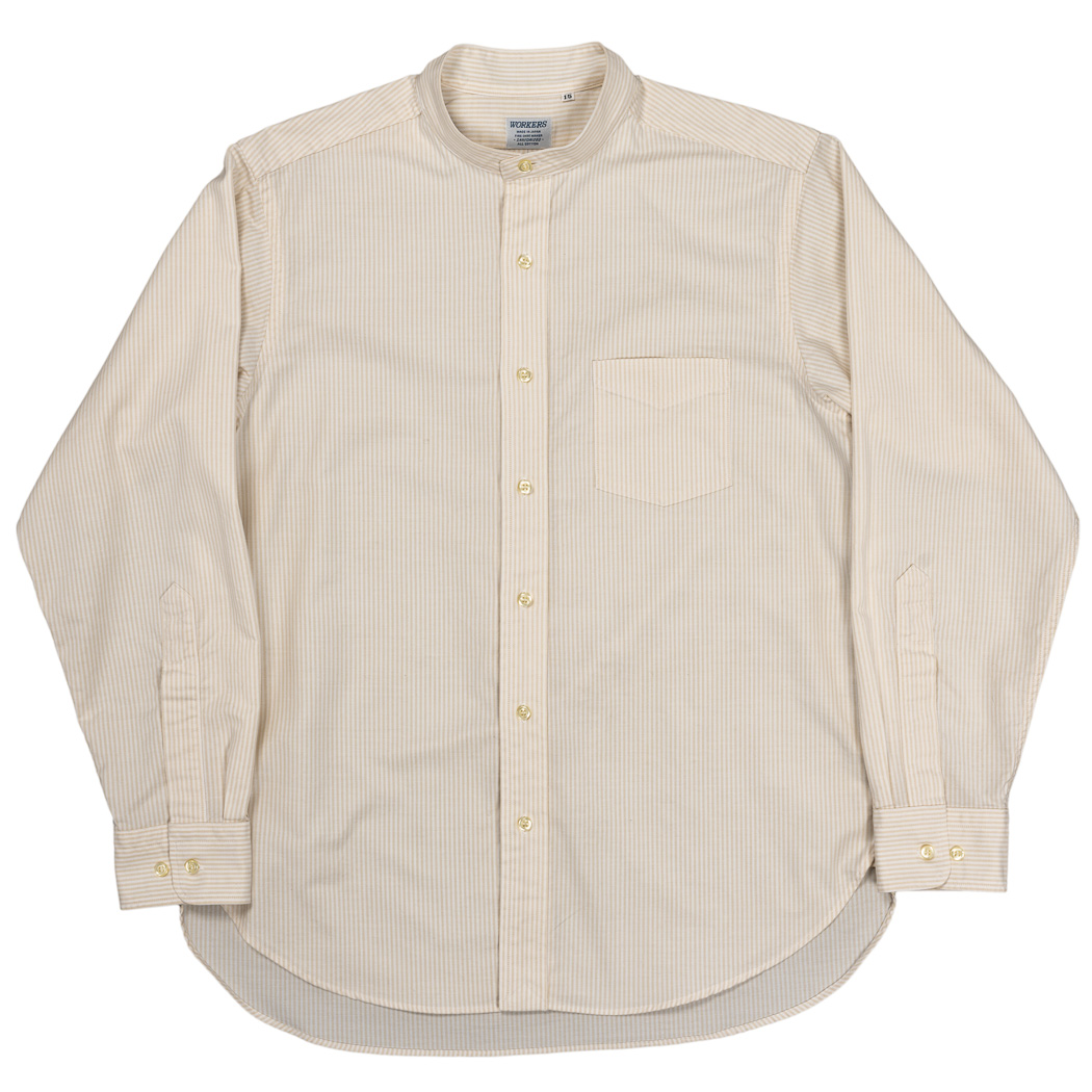 Band Collar Shirt, Ecru Supima OX