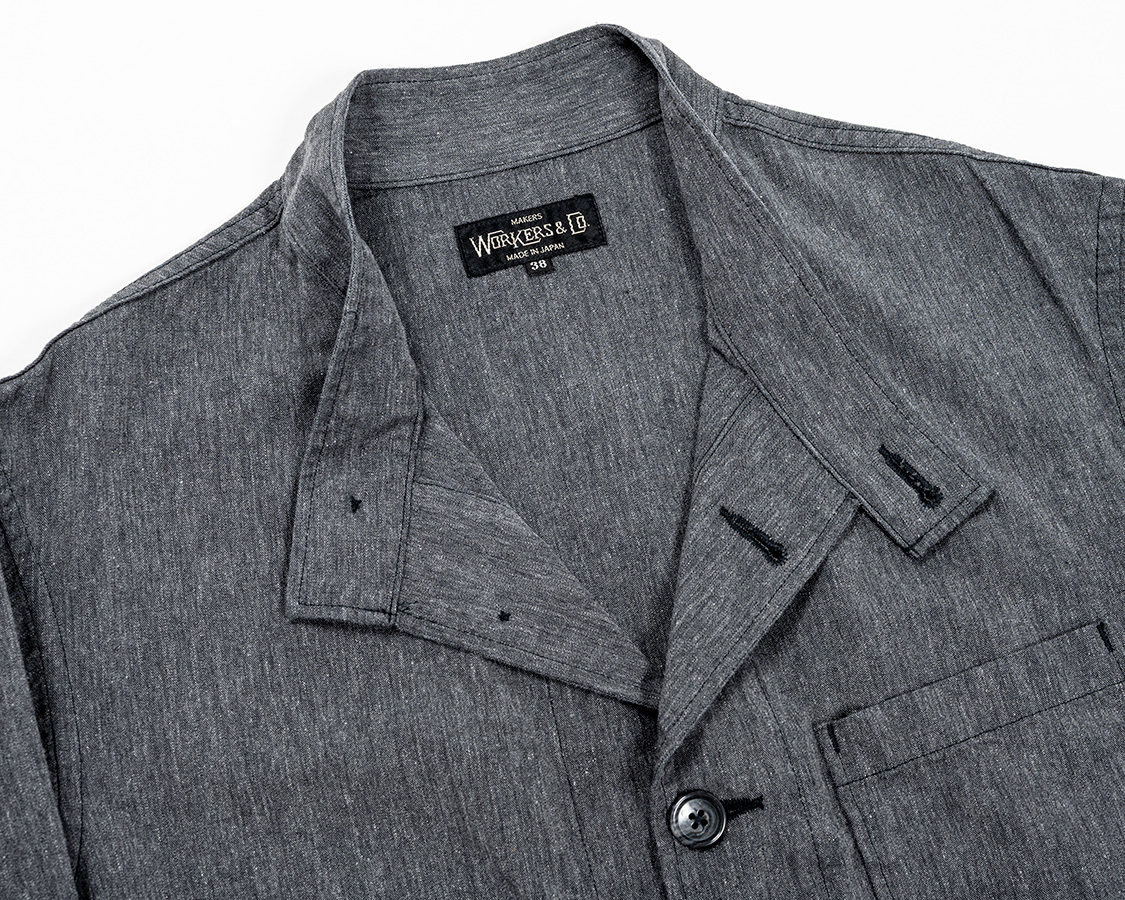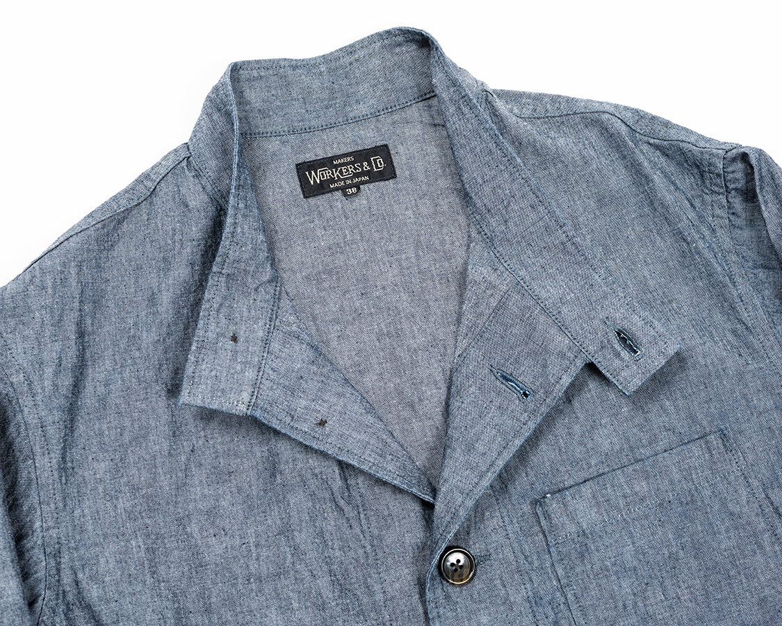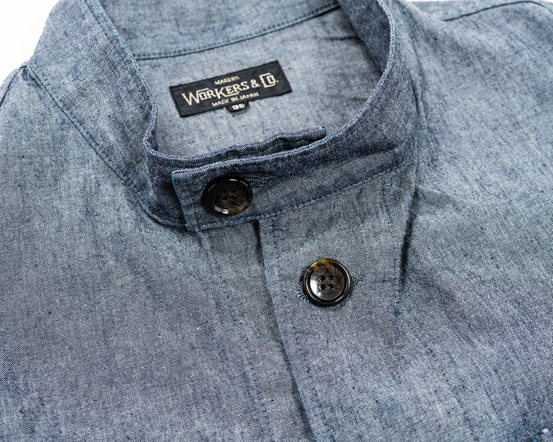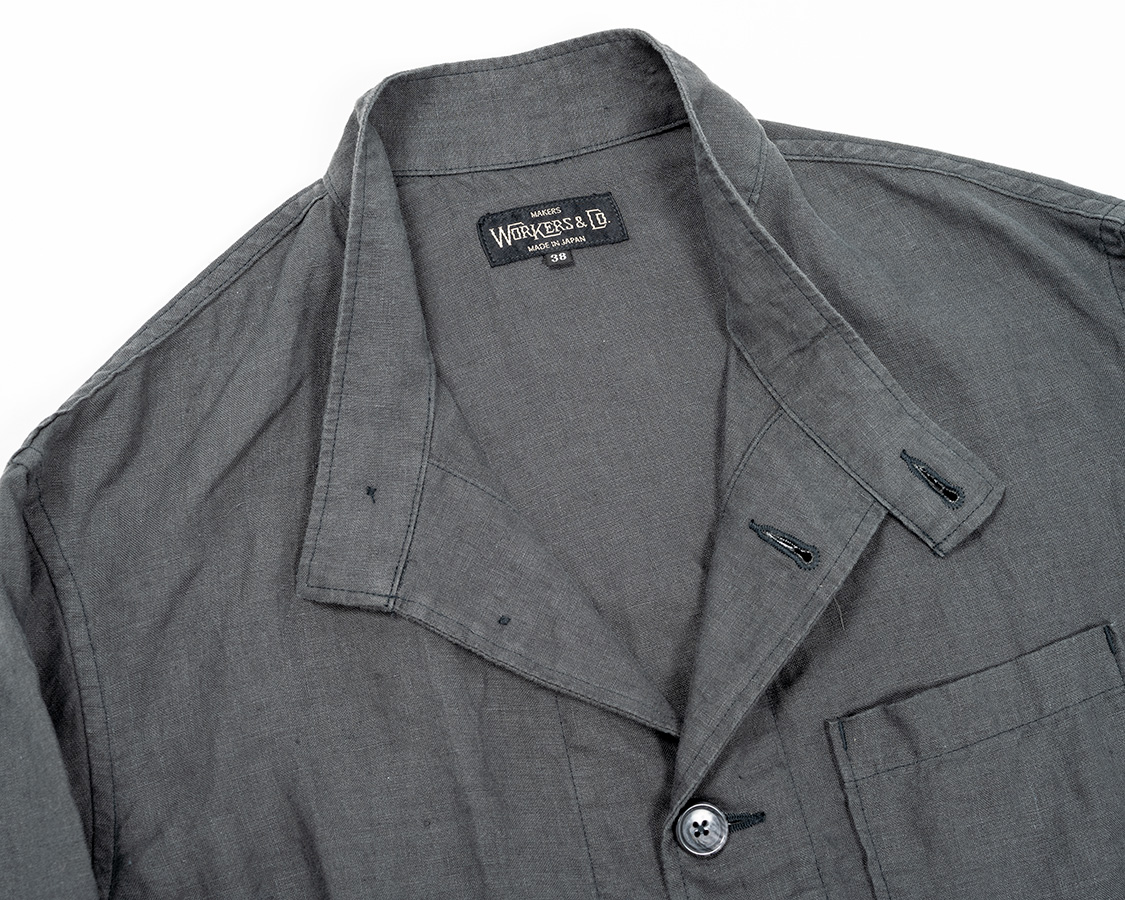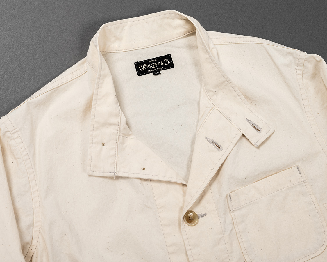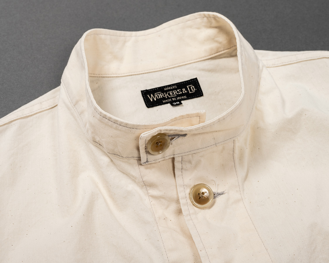 WORKERSではオリジナルを身ながら、首に沿う、でも無理やり開く型にしています。