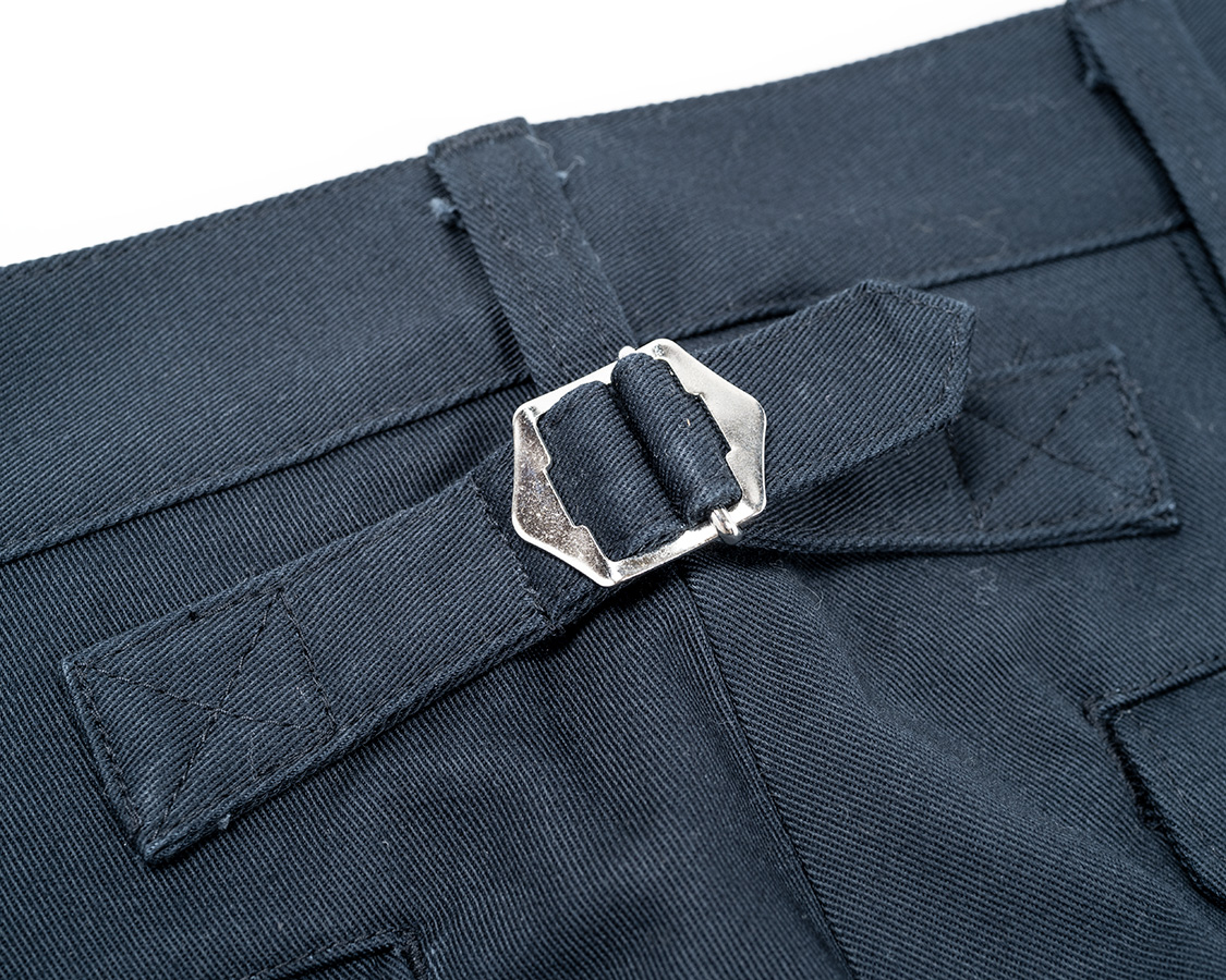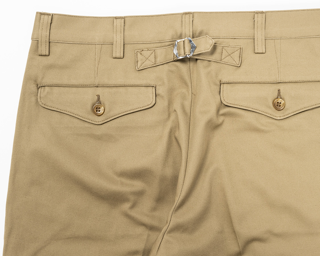 アイビーパンツはでなければならない!の尾錠。尾錠本来のサイズ調節の役目はほとんど果たしません。果たすぐらい締めると不格好です。あくまで飾り!