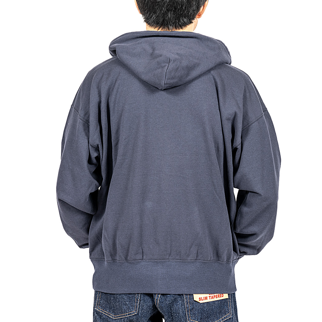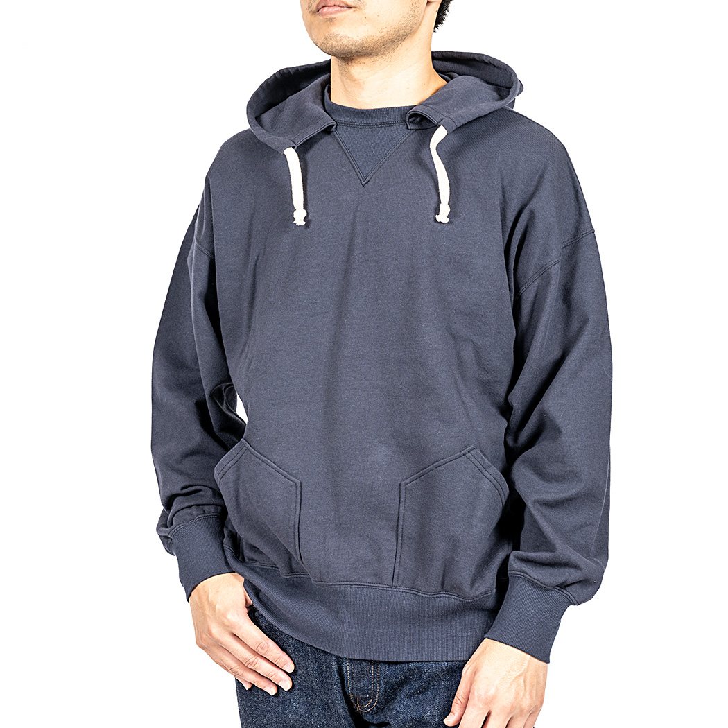 真冬以外の時期、インナーとしても着やすい厚みで作りたいと、8 オンス・起毛しない裏毛(スウェット素材)でラインナップ。春スウェットは作っても売れないのに、自分が着たいとどうしても形にしたくなる。服好きがメーカーやるもんじゃ ないという良い例です。