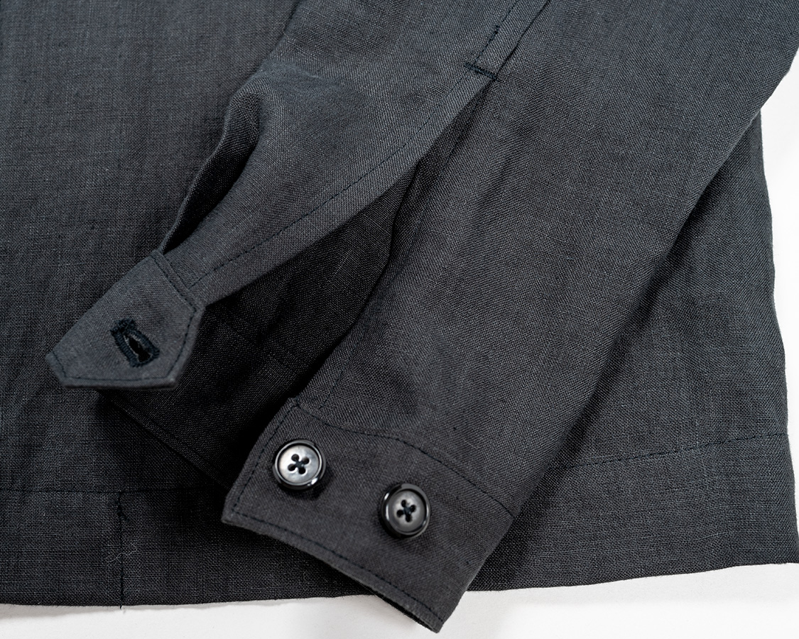 夏向きという事で袖口はカフス+開き仕様。袖がまくれます。