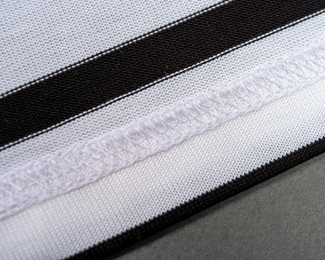 地味なこだわり、裾や袖口の折り返してロック目で縫っている部分。ここは折り返す前にも一度、生地1枚でロックをかけています。万が一、ステッチがはずれてもすぐに生地の端が出てこないので修理がとてもしやすい。持ちが違うので。