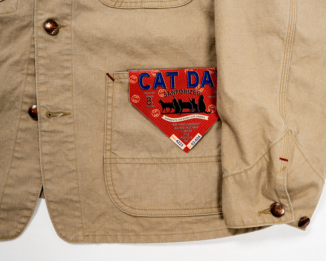 腰ポケットには補強当て布付き。フラッシャーのデザインが一番大変でした。全ての猫好きに送るカバーオールです。