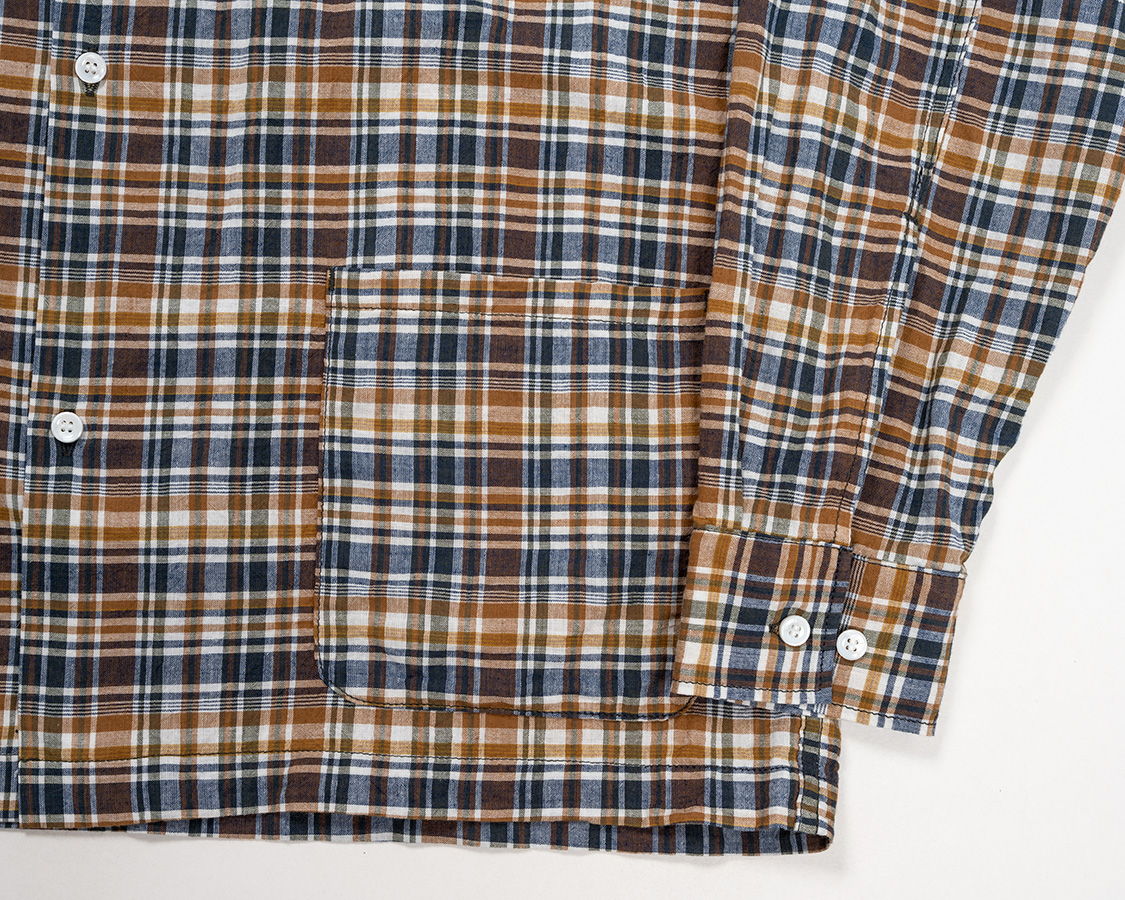 Open Collar Shirt, Orange Madras |