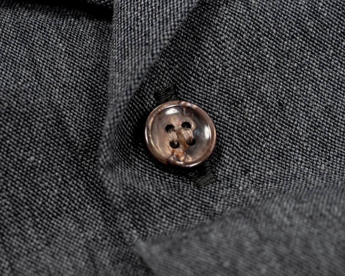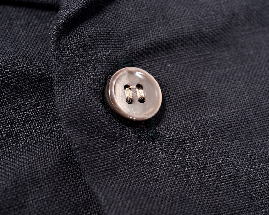淡水貝を使ったボタン。ポリエステルなどの樹脂ボタンのほうが洗って割れる心配は少なくコストも下がるのですが、やはりリゾートの雰囲気には貝ボタン!と今回も貝ボタンを使いました。