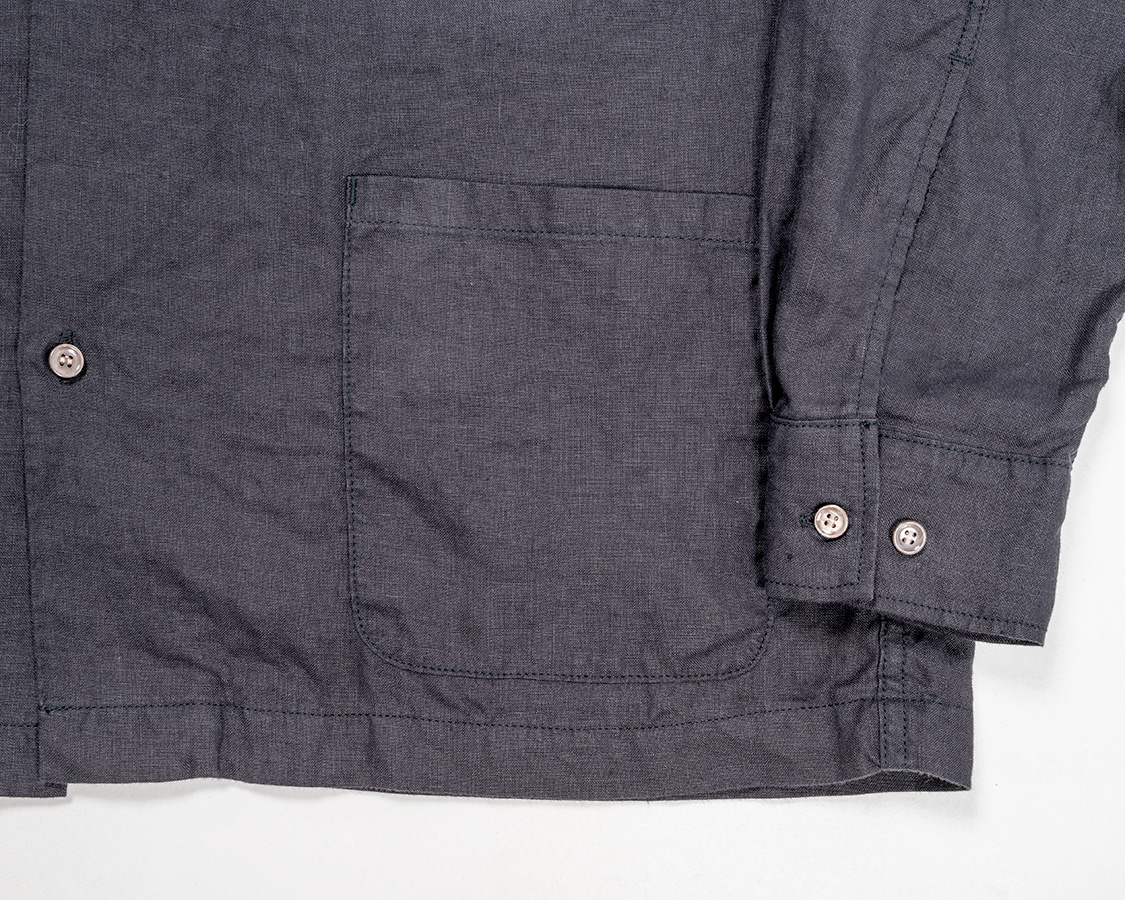 | Open Collar Shirt, Black Linen |