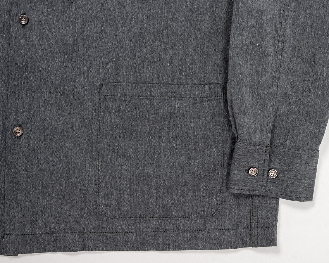 Open Collar Shirt, Black Chambray |