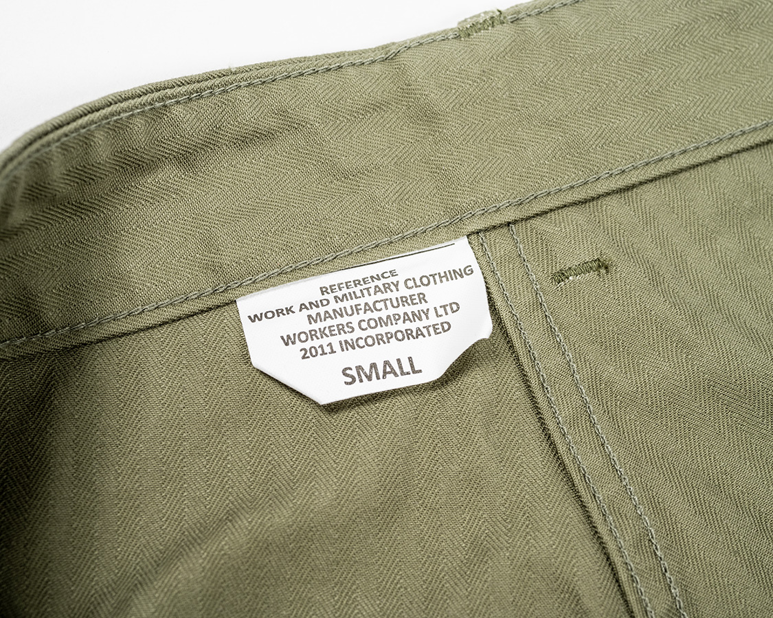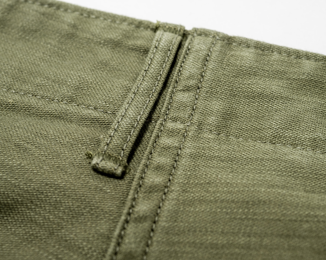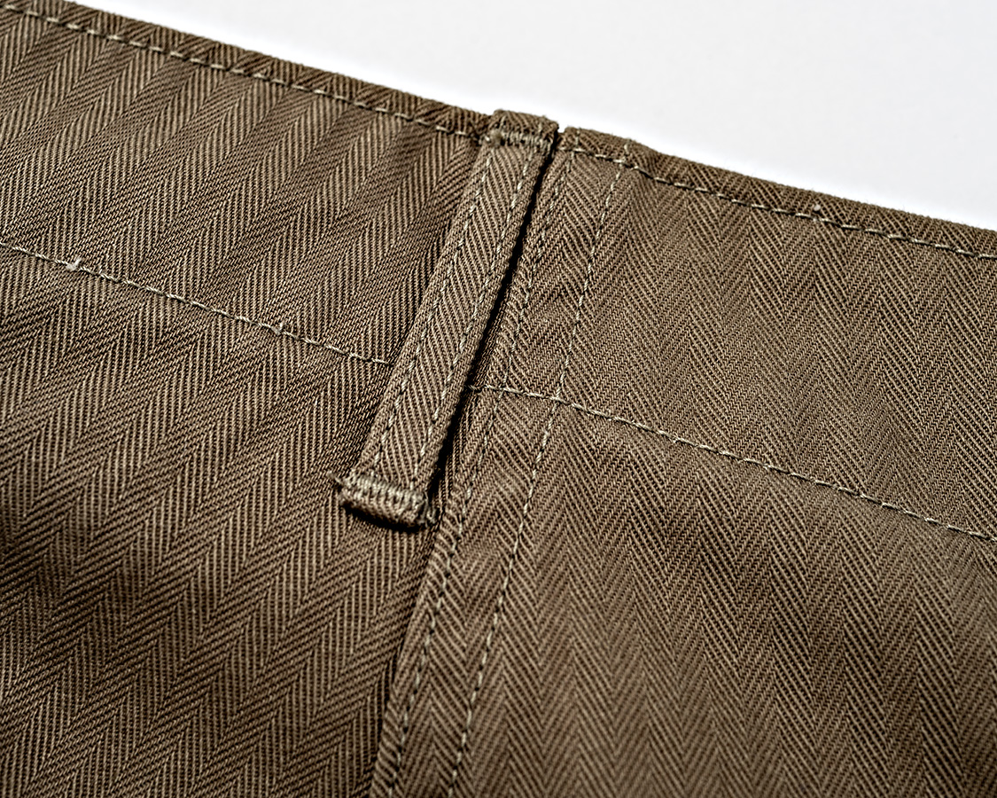 おなじみ、WORKERS別注ミシンで縫う細いループ。ループが細いだけでなく、針幅も通常のループより狭くしています。