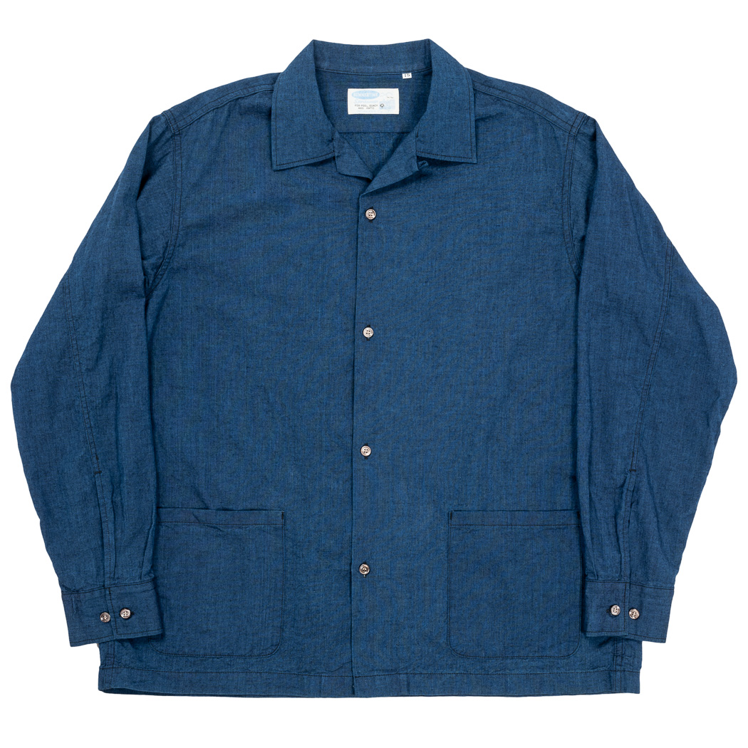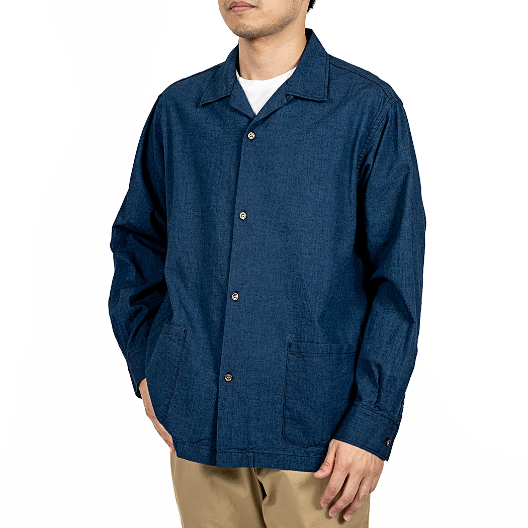 シャンブレーは5 オンス。インディゴ染なので色落ちします。白物と一緒に洗濯は絶対NG。