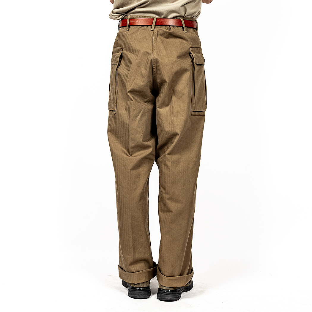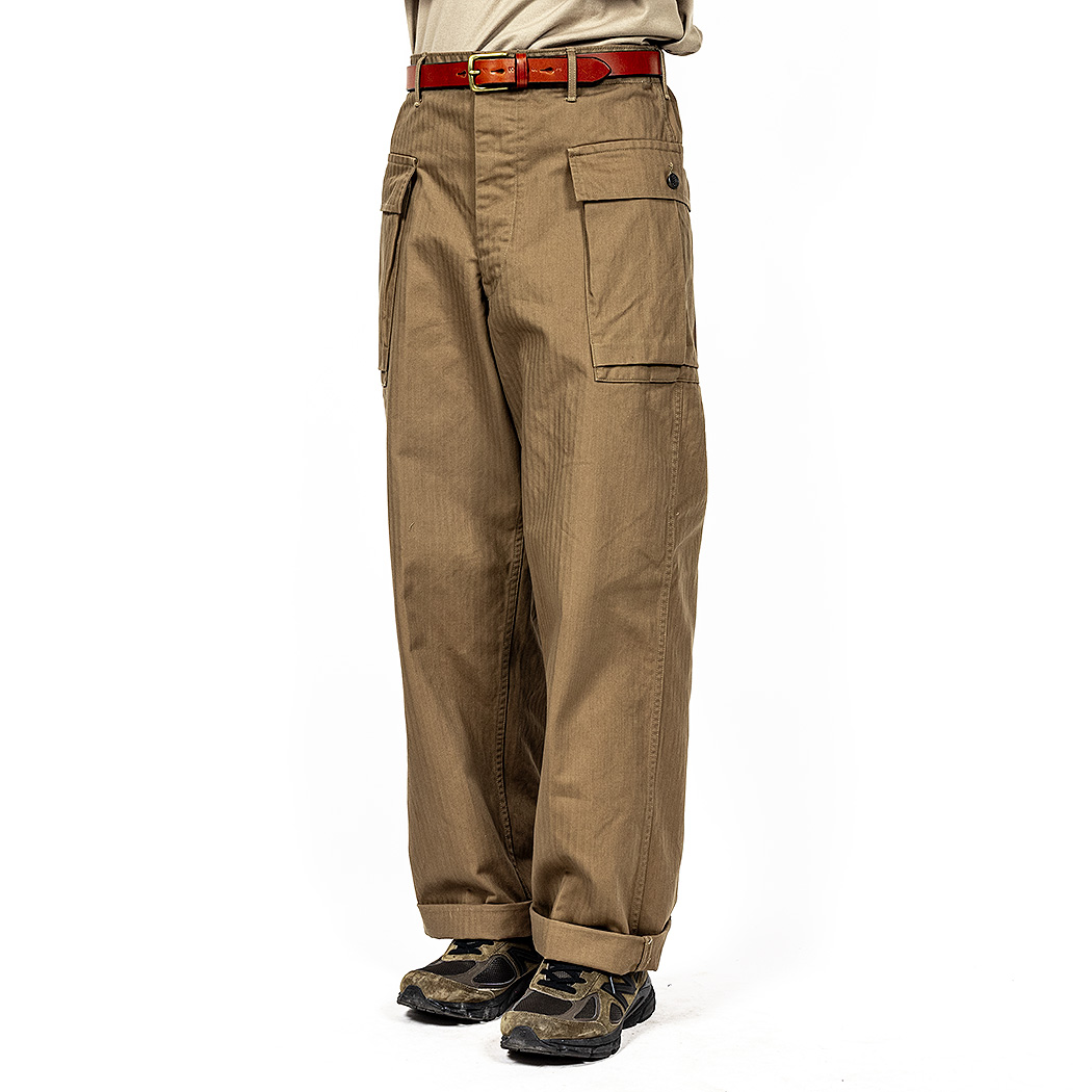 24春夏 で「軍パンが久しぶりに作りたいな~」と工場さんに相談すると「6ポケは絶対に作りません」と厳しい答え。そこで思い出したのがM-43。あの2 ポケならば蒸し暑い季節にも前・後ろにスレーキポケットが無く涼しい。