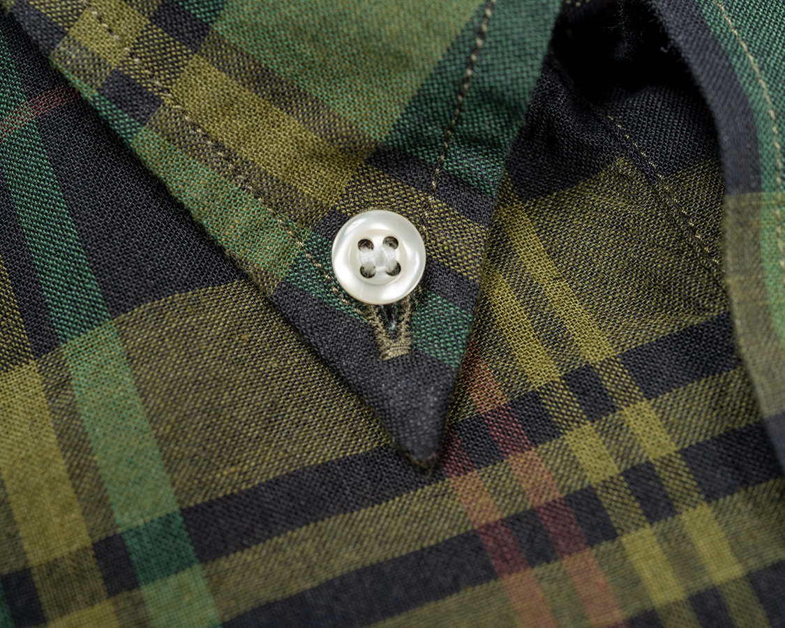 私が、まだ工場勤めしながら、穴あけ一つも「ああしてほしい、こうしてほしい」と、横について指示してた時に一番難しかった襟先のボタンホール。まず、精密に角度を合わせること。