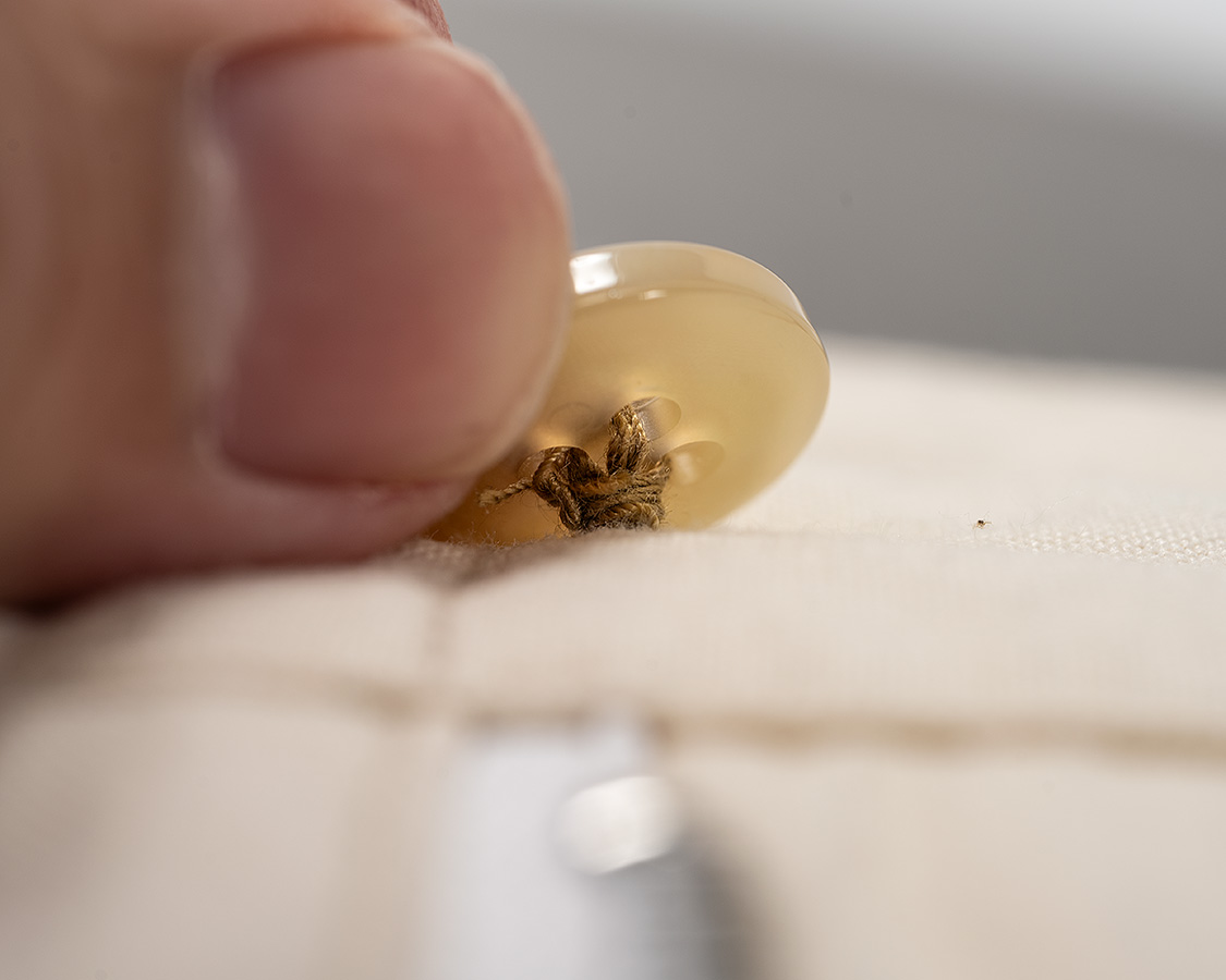 トップのボタンはホール側に厚みがあるので寝巻しています。