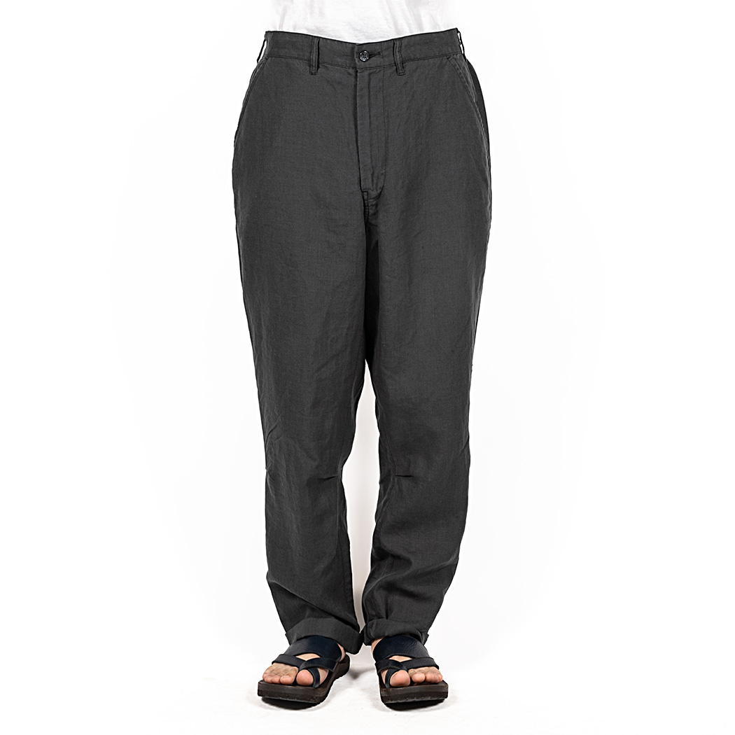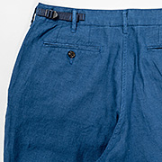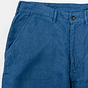 リネンはこの数年定番で使っている5.5 オンス。ブルーはインディゴではなく反応染めなので色移りは気にしなくてOK。ただリネンは着こむとインディゴとはまた違う色変化はします。