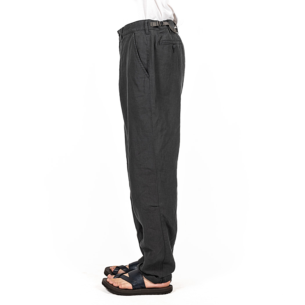 よく、ウェストのバックルがあっても滑ってしまい大して使い物にならないのがありますが、WORKERS のFWP Trousers は大丈夫です。しっかり止まる、そしてゆるめるのも簡単。バックルのテープが通る巾・ テープ表面の摩擦がばっちり合っているからです。ベルト無しでもしっかりウェストがしまります。