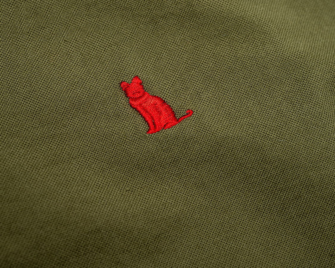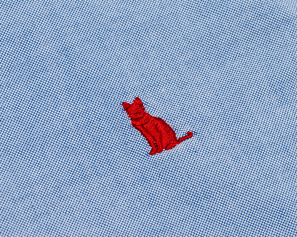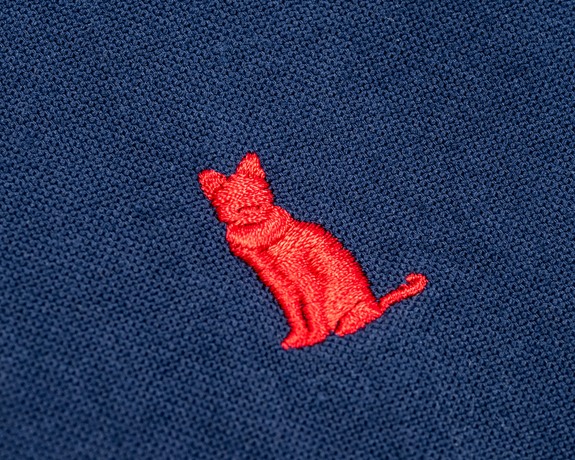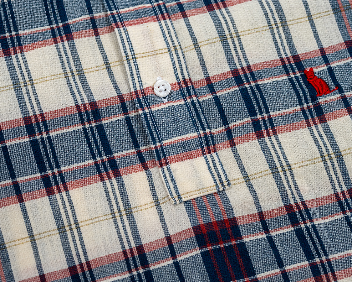 前立ての下側。プルオーバーのボタンダウンだと剣ボロのようにとがった形にするところ、あくまで「ポロ」なので角型。