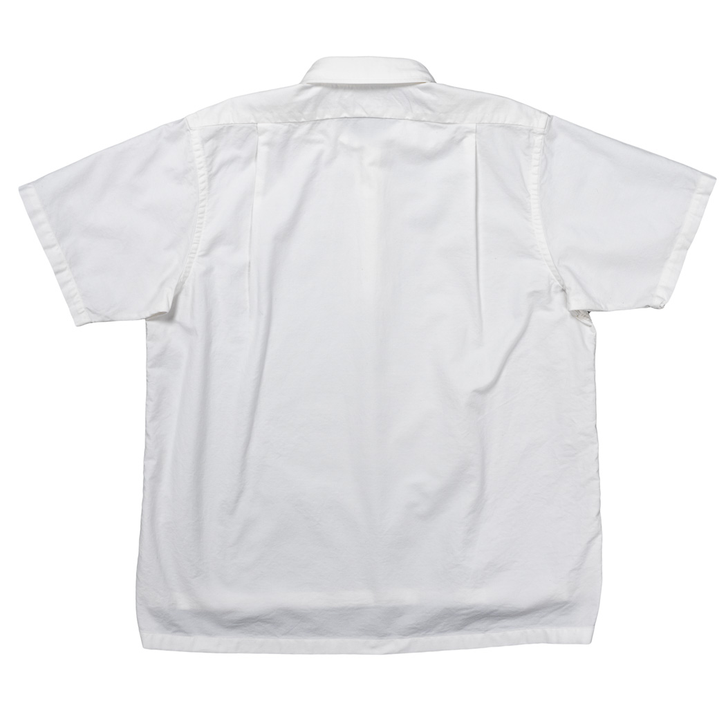 悩んだのが襟。ポロシャツは編み立てた1 枚襟を身頃に取り付け、縫い代はテープで隠す始末。それを真似ようかとも 思いましたが、せっかくシャツならシャツらしい仕立てができる。ポロシャツのイミテーションでは意味が無い。あくま で要素として取り入れ「ポロシャツの襟、シャツ仕立てだと何が一番近く見えるかな?」と考えると・・・ワイドスプレッ ドが一番近い。ボタンダウンも一瞬考えましたが、それだと、プルオーバーBD と同じようになってしまうのでワイドスプレッドで決定。