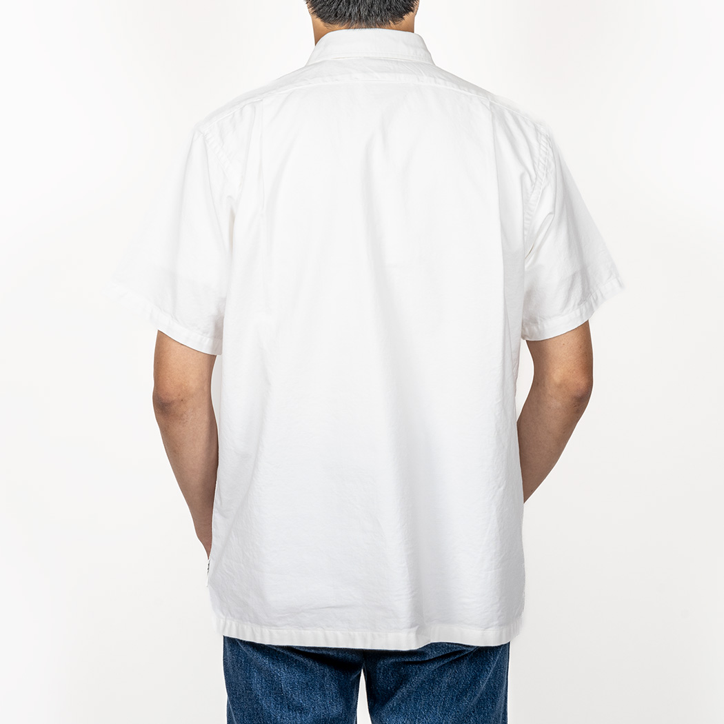 身頃はMサイズで60センチ程とゆったり。背面のサイドタックで横幅を出しています。着丈、73センチ程。ポロシャツよろしく前が短いデザインなのでタックアウト前提。