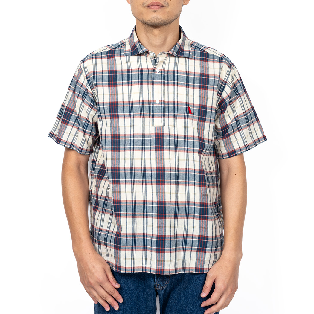 マドラスは本来のポロシャツではまずありえないだろう組み合わせ。 半袖プルオーバー、今まではボタンダウンばかりだったのでそれとは違う雰囲気になったのではないでしょうか?