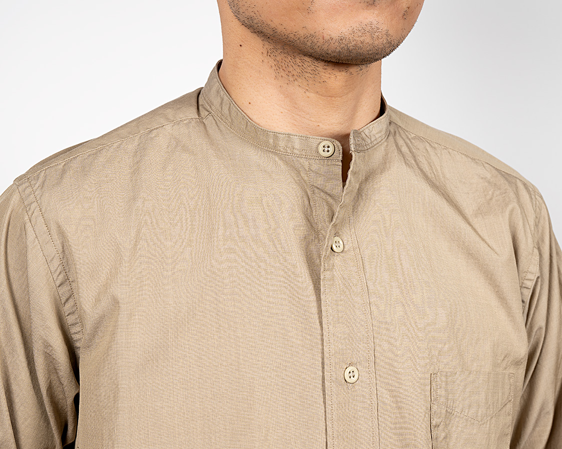 Band Collar Shirt, Beige Broadcloth |
