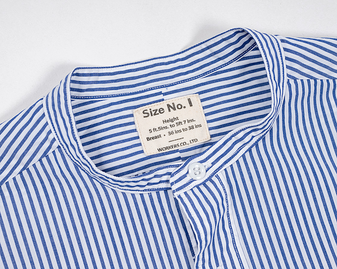 オリジナルはバンドカラーにスタッドボタンで替え襟がつく仕様だったものを、替え襟は無しに変更。やたら細い台襟が特徴。