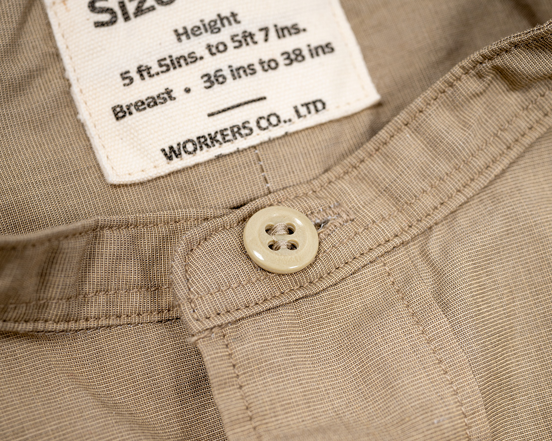 WORKERSのバンドカラー、襟型がいくつかあり今回のものはイギリスミリタリーらしきシャツを参考に型紙をひいたもの。