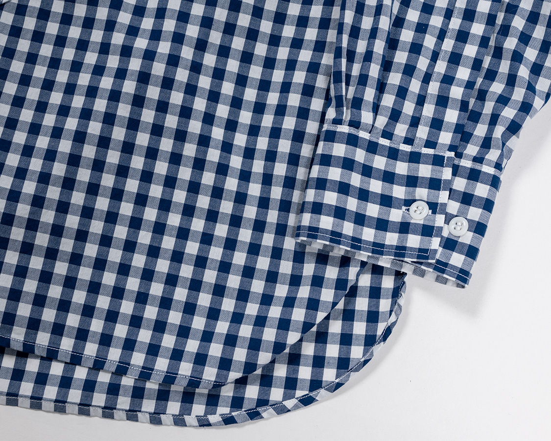 Band Collar Shirt, Gingham Poplin |