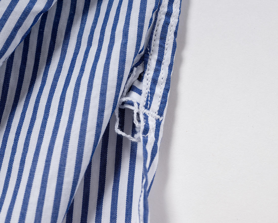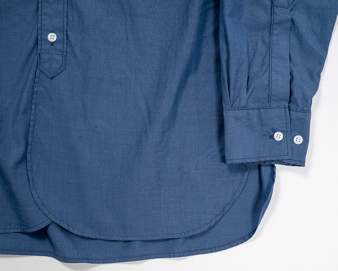 フロント下端は左右重なりのある丸みのある仕様。クラシックなシャツではよく見られる仕様。