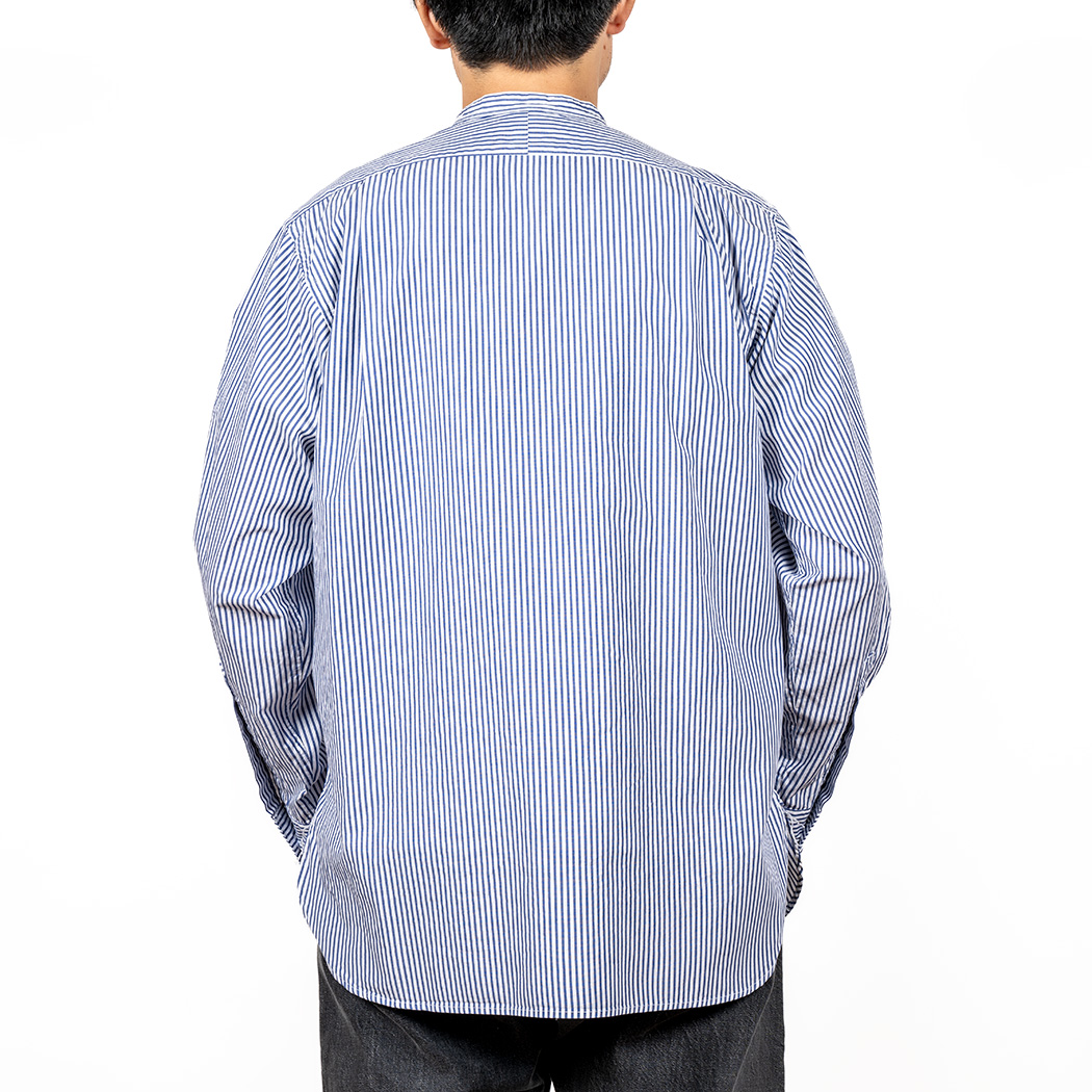 Band Collar Shirt, Stripe Poplin |