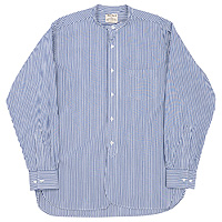 ・細めの台襟、ラウンドしたフロントが特徴のバンドカラーシャツ