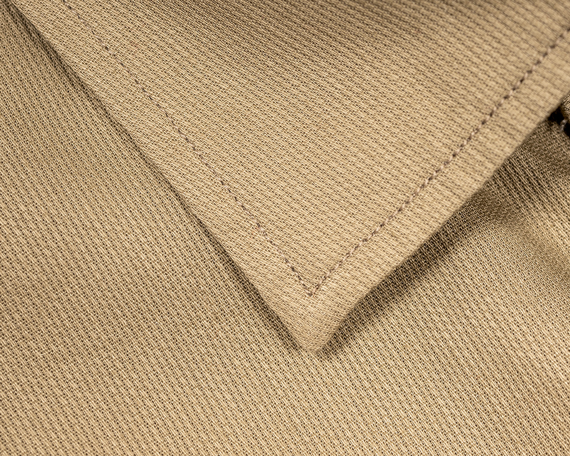 素材のアップで生地の手触りが想像できるでしょうか?ピケはタテ・ヨコの糸の織り目に隙間があるのがわかります。だから薄くて涼しいのです。