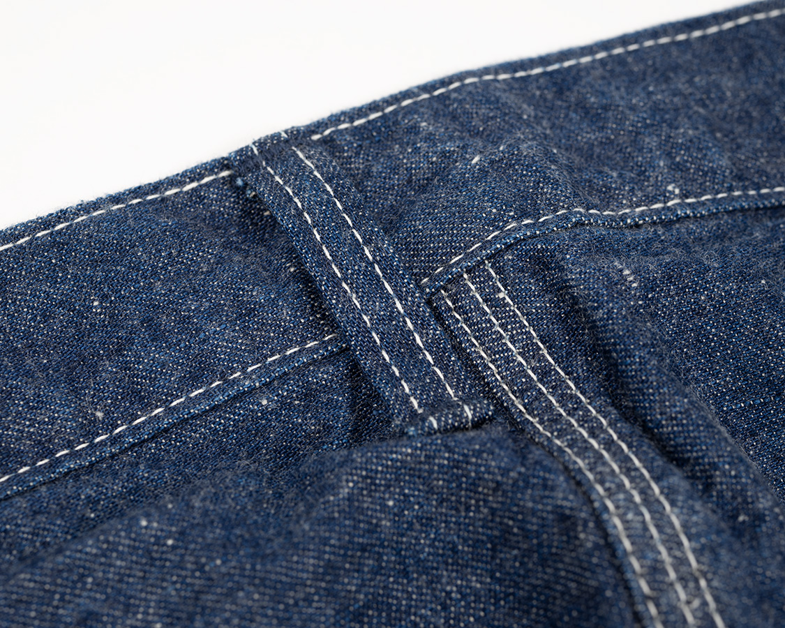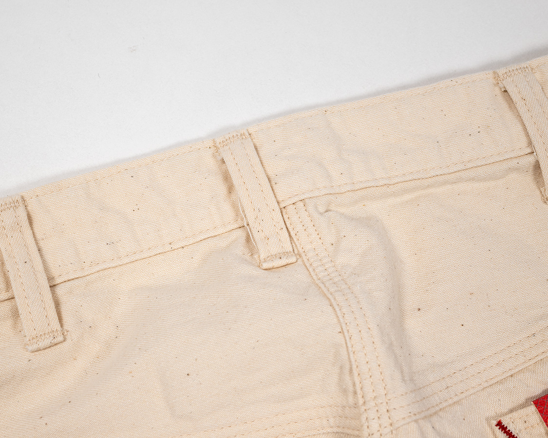 特徴的なのがヨークがあること。ワークパンツというとヨーク無しが多いところ、トリプルステッチの力強さも出したくヨーク有のデザインにしみました。