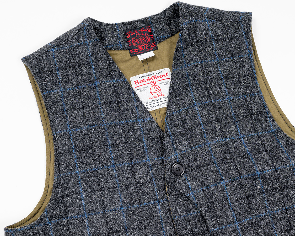 Cruiser Vest, Harris Tweed, Black x Blue |