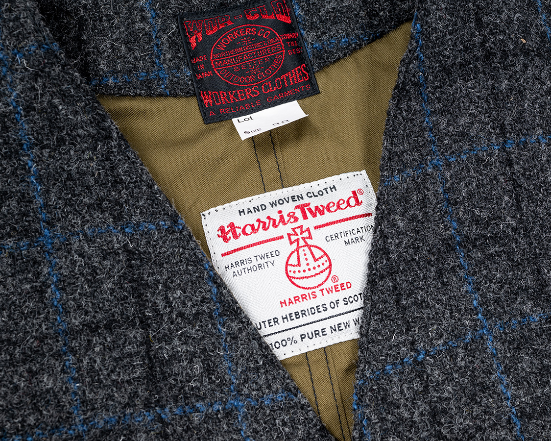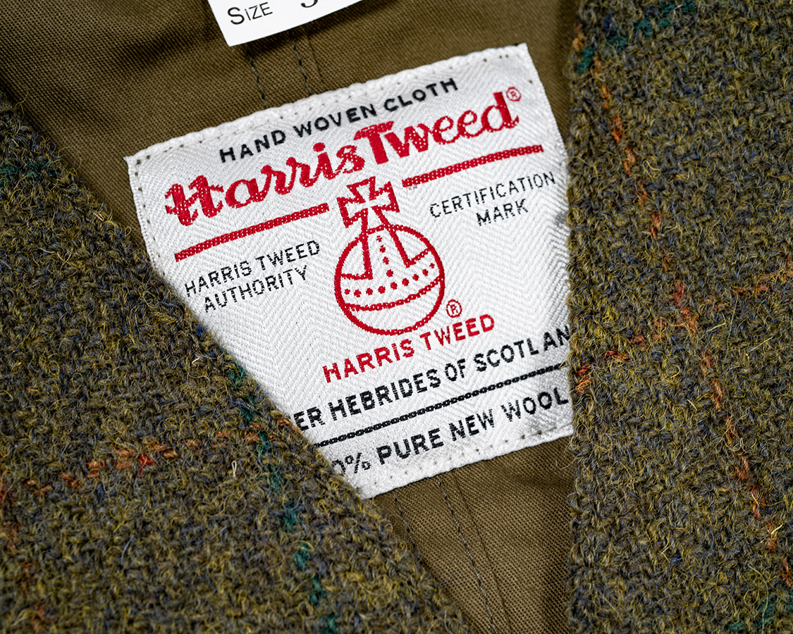 表地ハリスツイードには生地ネーム。