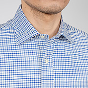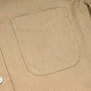 身頃、フィット感はあるがピタピタでは無い。肩幅も落ちすぎず、入りすぎず。着丈は裾を出しても・入れても着られる75センチ程がマスターサイズ。袖ぐりのカマ(縦方向の寸法)自体はある程度余裕があり、窮屈さは無い。でも肘から先をわずかに細くしてすっきりと。その分、袖がまくりづらくなるので、袖口の開きは深めにとる・・・といったように、機能性を考えて型紙をひいています。「デザイン的なシャツ」では無く、「設計的なシャツ」とでもいうのでしょうか。型紙を自分でひくからこそ、こういう作り方の品番もあるのです。