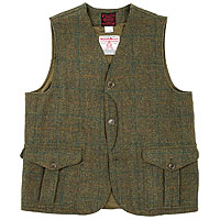 ・Cruiser Vest、表地がバックサテン、デニムのコットンとハリスツイード。コットンはオールシーズン、ウールは冬用。