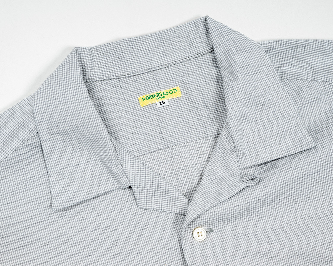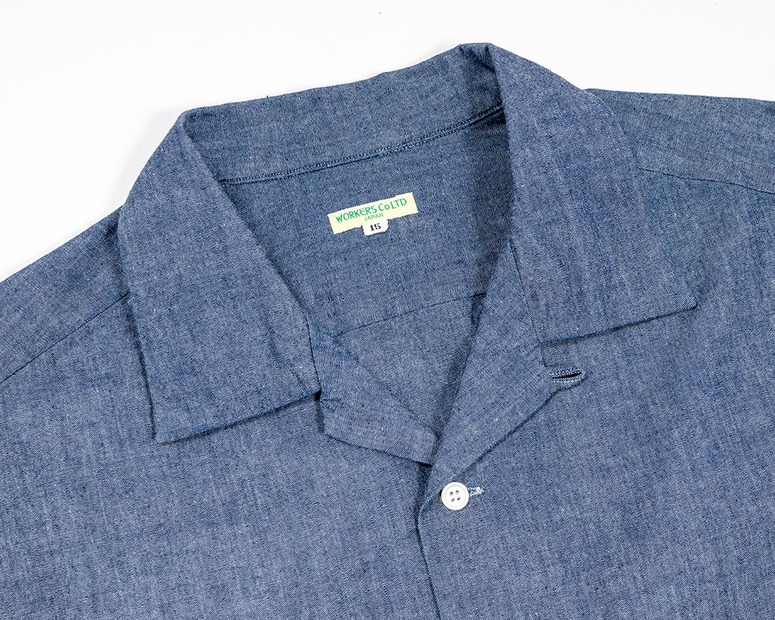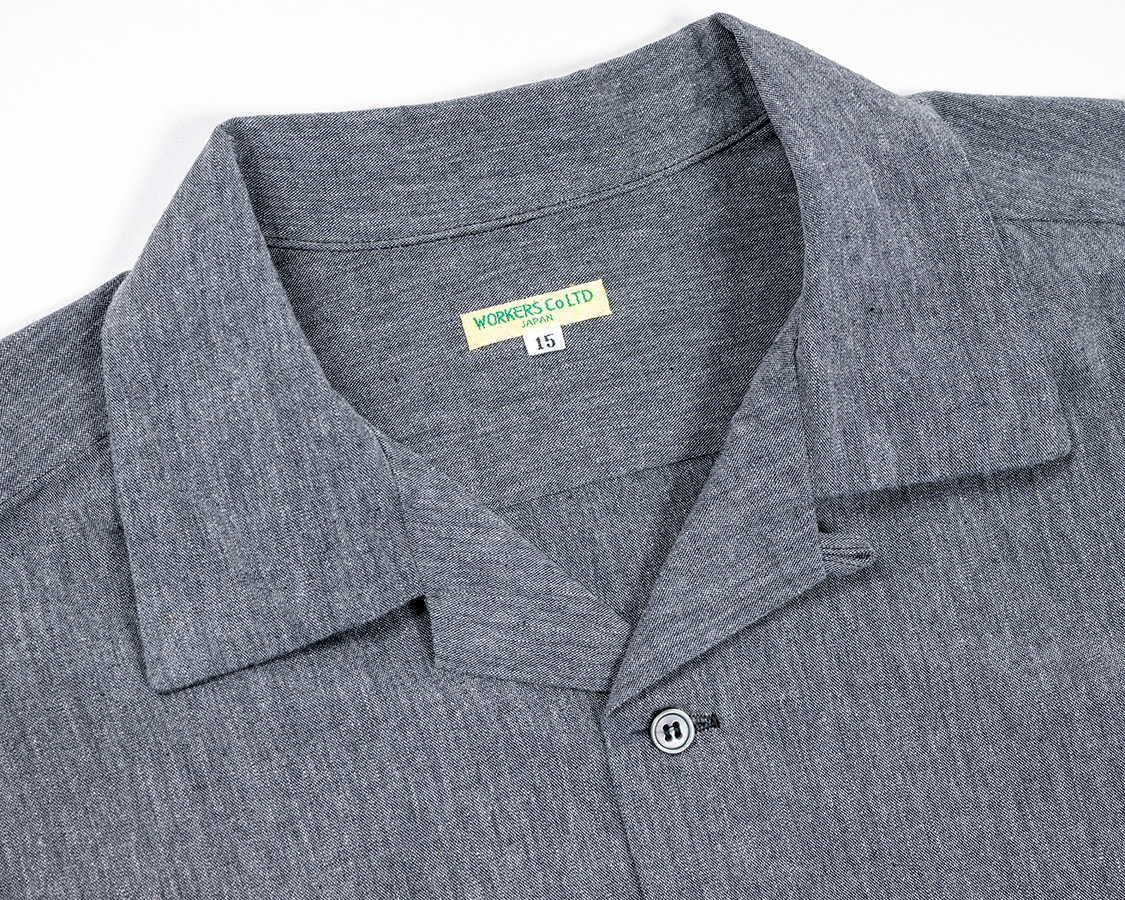 開きすぎると着づらい、かといってボタンが上すぎるとオープンカラー感が無い。ネックのクリ具合とも関連しているので、単純に参考にしたオリジナルから寸法を取るのではなく、「WORKERSのシャツ型」に合わせてボタン位置を調整しました。