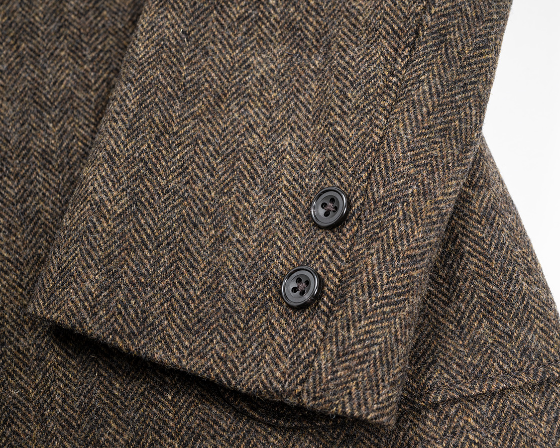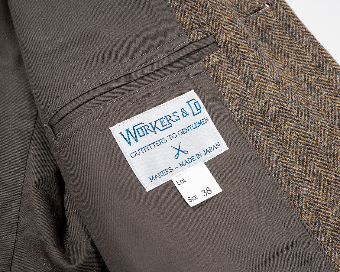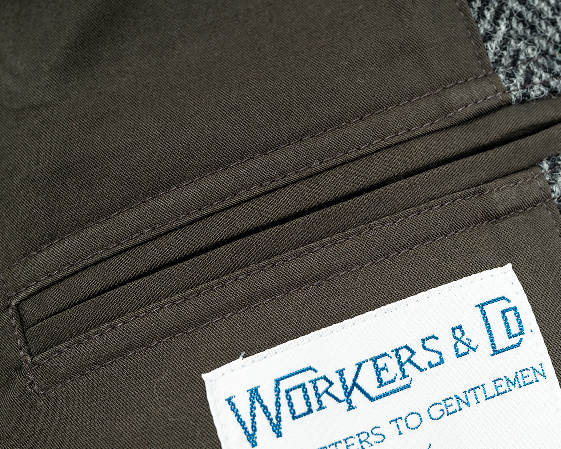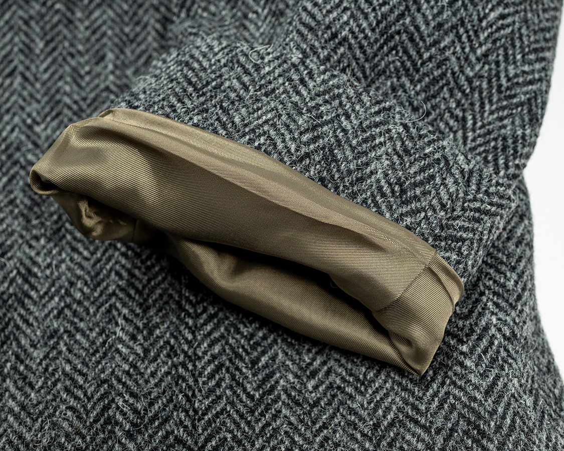 左右、両玉縁の内ポケット。グレーのツイードはハリスツイードネーム。