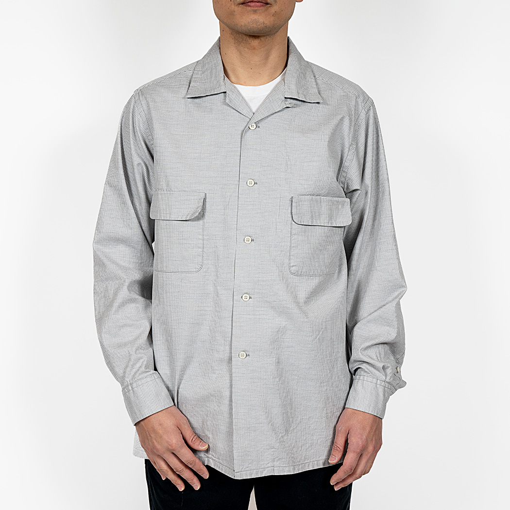元ネタはかつてフランスで一世を風靡した(らしい)お店の長袖オープンカラーシャツ。古着で千鳥の一枚を見つけて着たかったのですが私にはサイズが合わない。ということで作りました。