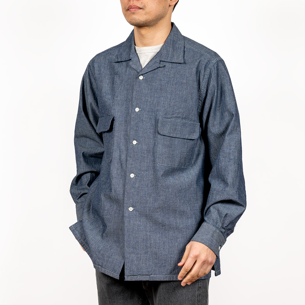 品名 Open Collar Shirt, Blue Chambray
