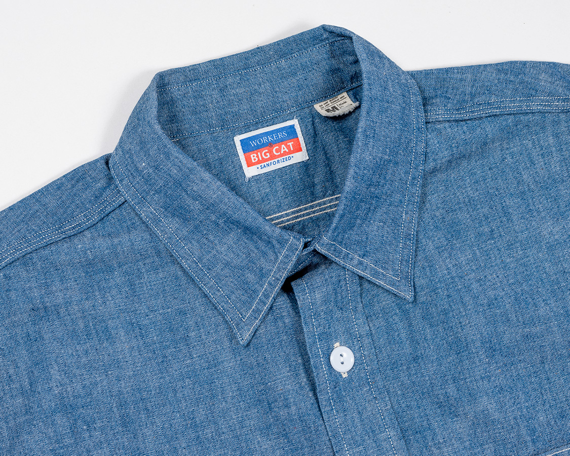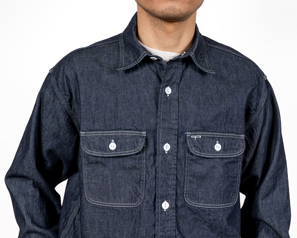 少し落ち気味の肩、ゆったりした身頃。一時代前のぱっつぱつとは違う、かといって若い子達が着る肩が落ちまくったのとも違う。ベーシックなワークシャツのサイズ感。