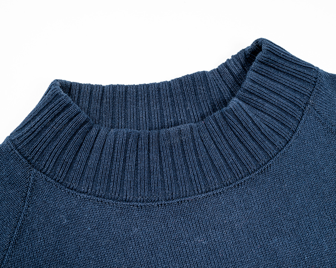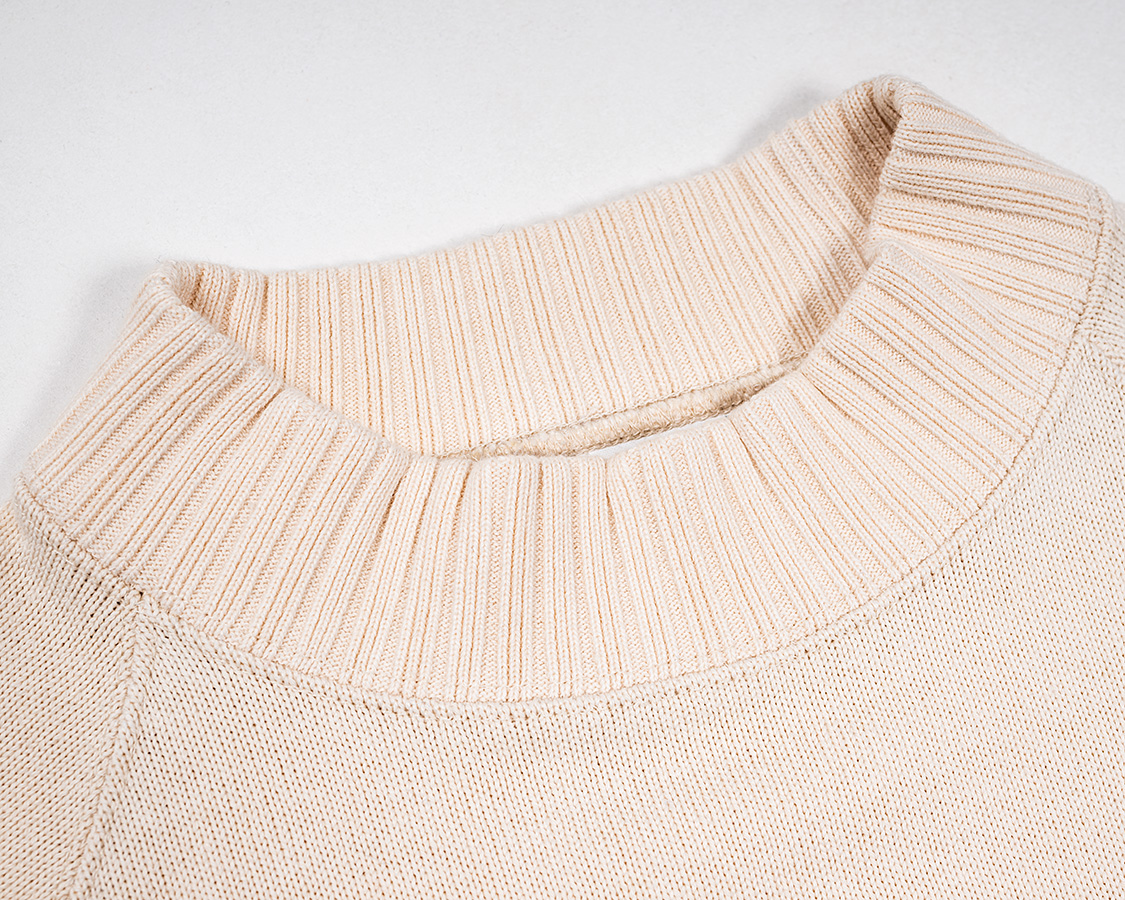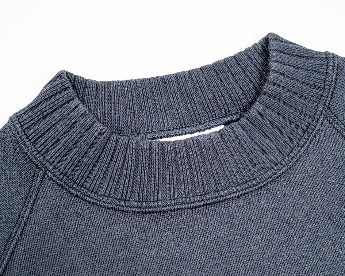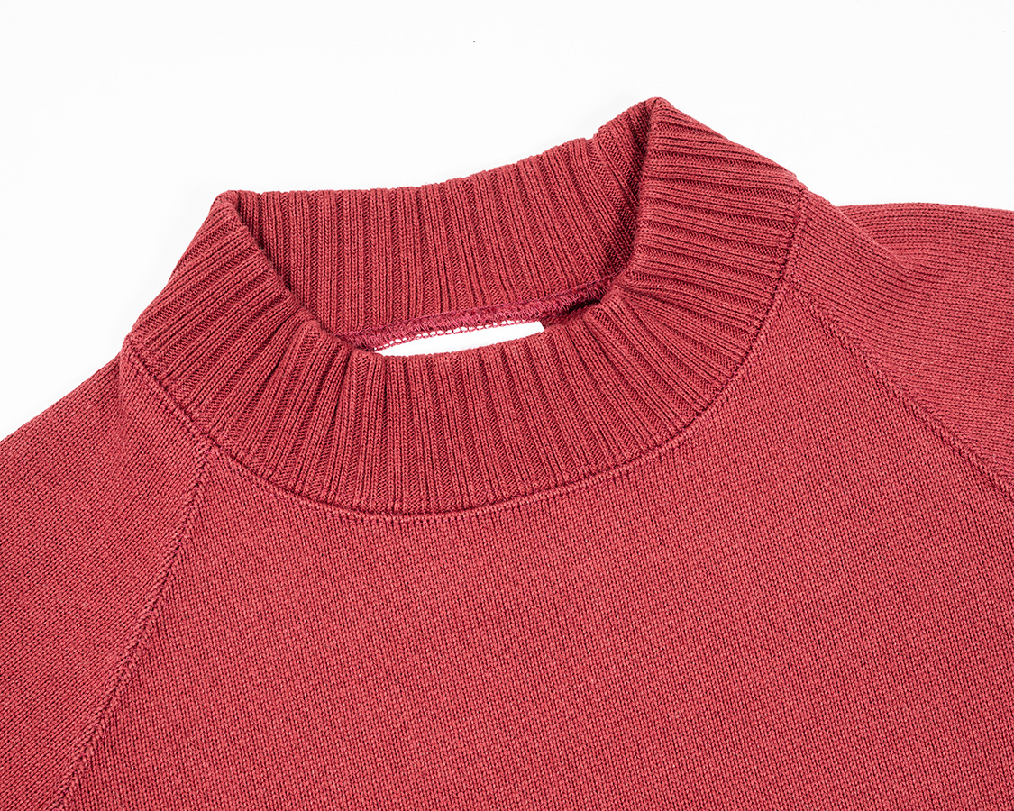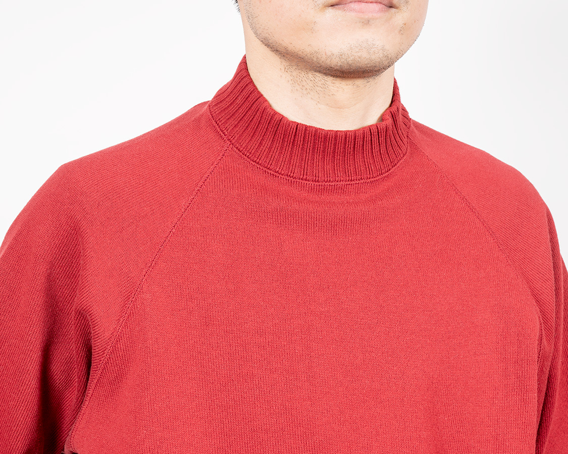 クルーネックよりちょと高い、でもモックネックよりは低い。この絶妙な高さが、Raglan Cotton Sweaterが指示される理由でしょう。