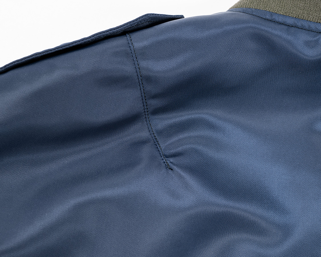 肩のダーツ。 この肩ダーツのおかげで独特の丸みがあるのがいわゆる「フライトジャケット」と称されるL-2BやMA-1のポイント。
