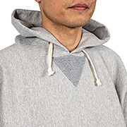 身頃はヨコ取りしたトリコタグのクルー/ パーカーが元ネタ。いわゆるリバースタイプ。